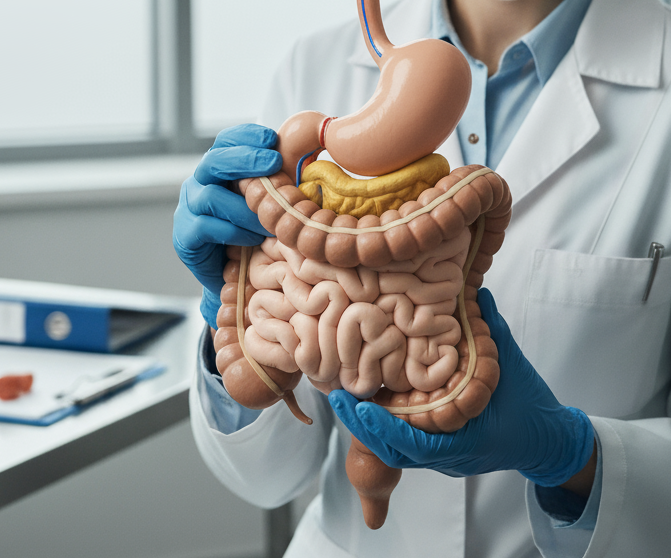 Consulta presencial com avaliação completa e personalizada para o diagnóstico e o tratamento de problemas digestivos.